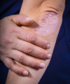 C’est une maladie chronique inflammatoire de la peau. Considérée comme maladie auto-immune, elle est liée à un dérèglement du système immunitaire. Elle se manifeste par l’apparition de plaques rouges, épaisses à la surface de la peau avec ou sans squames (lamelle de peau blanches), alternant période de poussée et période de rémission. Souvent à l’origine de démangeaisons, elle se présente sous différentes formes et se localise à différents endroits du corps.